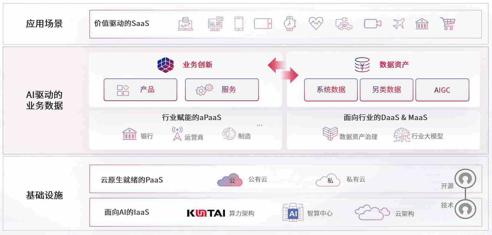 数字时代,,围绕企业数字化转型的关键要素,,PA直营数码开创性的提出数云融合战略和技术体系框架,,,,着力在云原生、、数字原生、、AI原生和信创产业上架构产品和服务能力,,,,为处在不同数字化转型阶段的快消零售、、汽车、、金融、、、、医疗、、、、政企、、教育、、、、运营商等行业客户提供泛在的敏捷IT能力和融合的数据驱动能力,,,构建跨界融合创新的数字业务场景和新业务模式,,,助力企业级客户建立面向未来的核心能力和竞争优势,,全面推动社会的数字化、、智能化转型升级。。。。